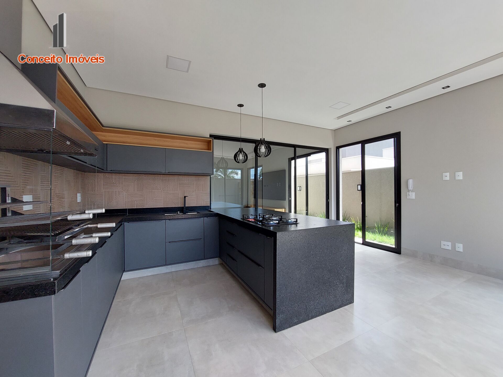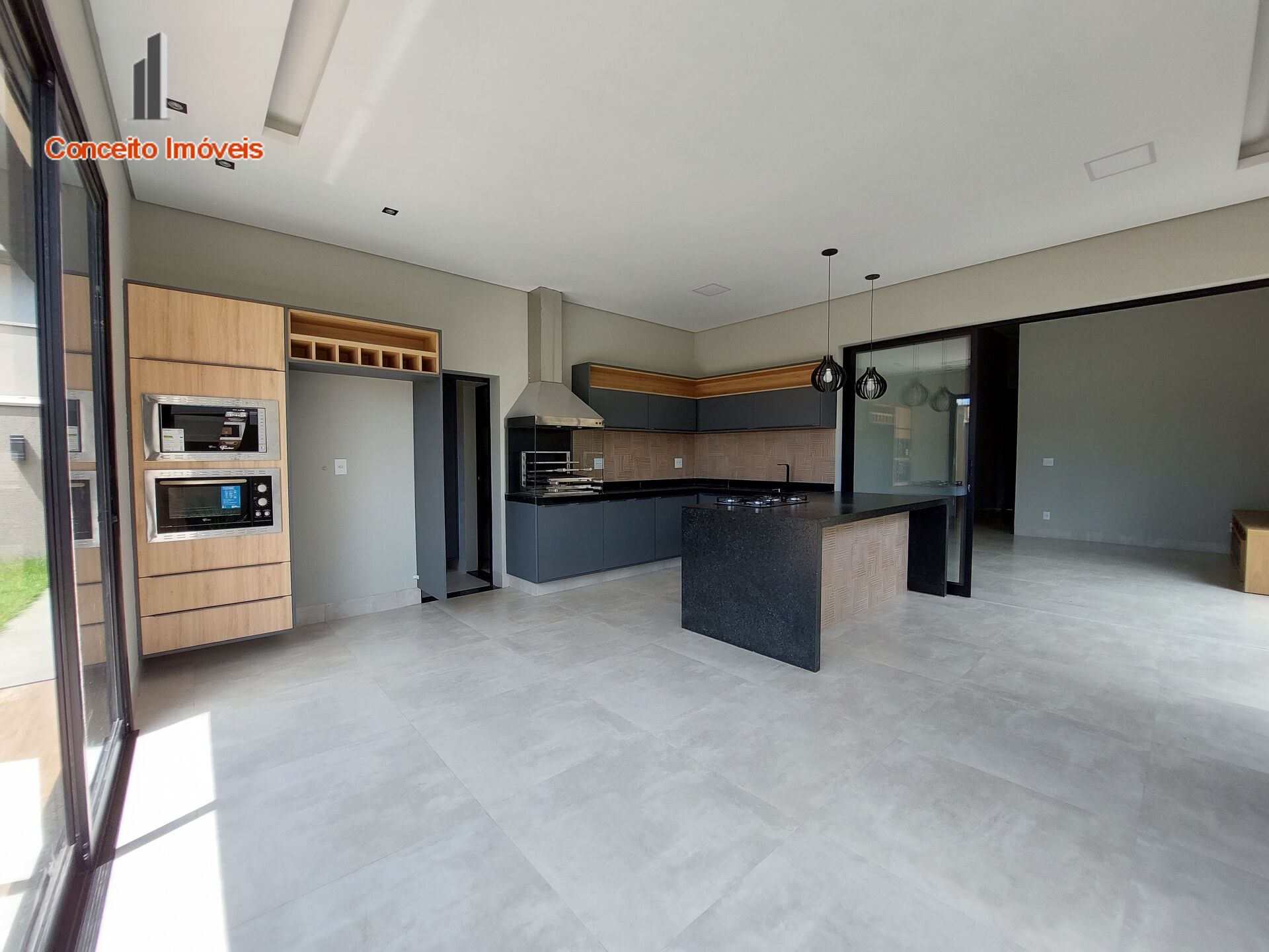 Living para 02 ambientes com pé direito alto deixando o ambiente charmoso e sofisticado, lavabo, escritório/suíte, cozinha planejada com armários, forno embutido, cooktop, coifa , churrasqueira, integrada a área gourmet .