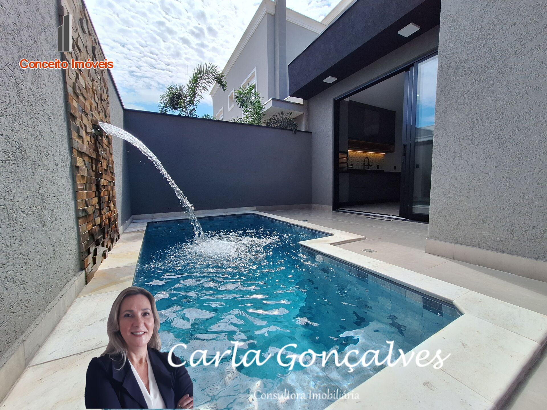 Piscina com cascata, hidromassagem e filtragem automática, vestiário de lazer, lavanderia.